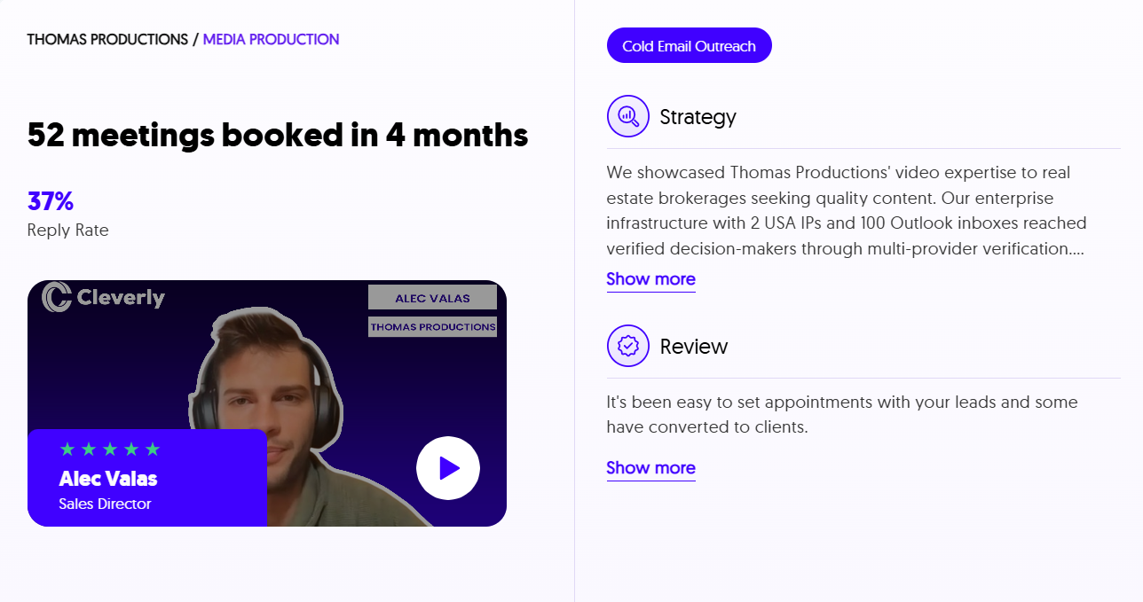 With Cleverly's cold email services, you only pay for meeting-ready leads we send you. No wasted spend on unqualified contacts.