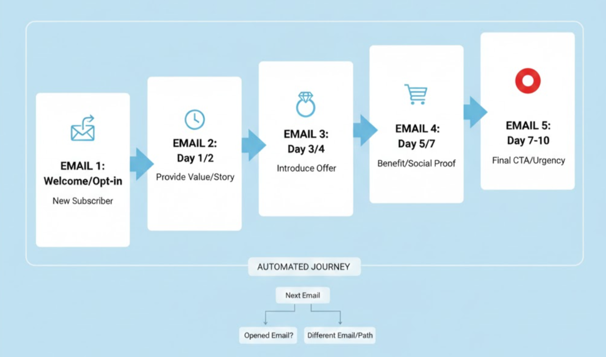Based on how a prospect engages (or doesn't), the agent triggers the appropriate next touchpoint — a follow-up, a different angle, or a pause — without waiting for a human to notice.