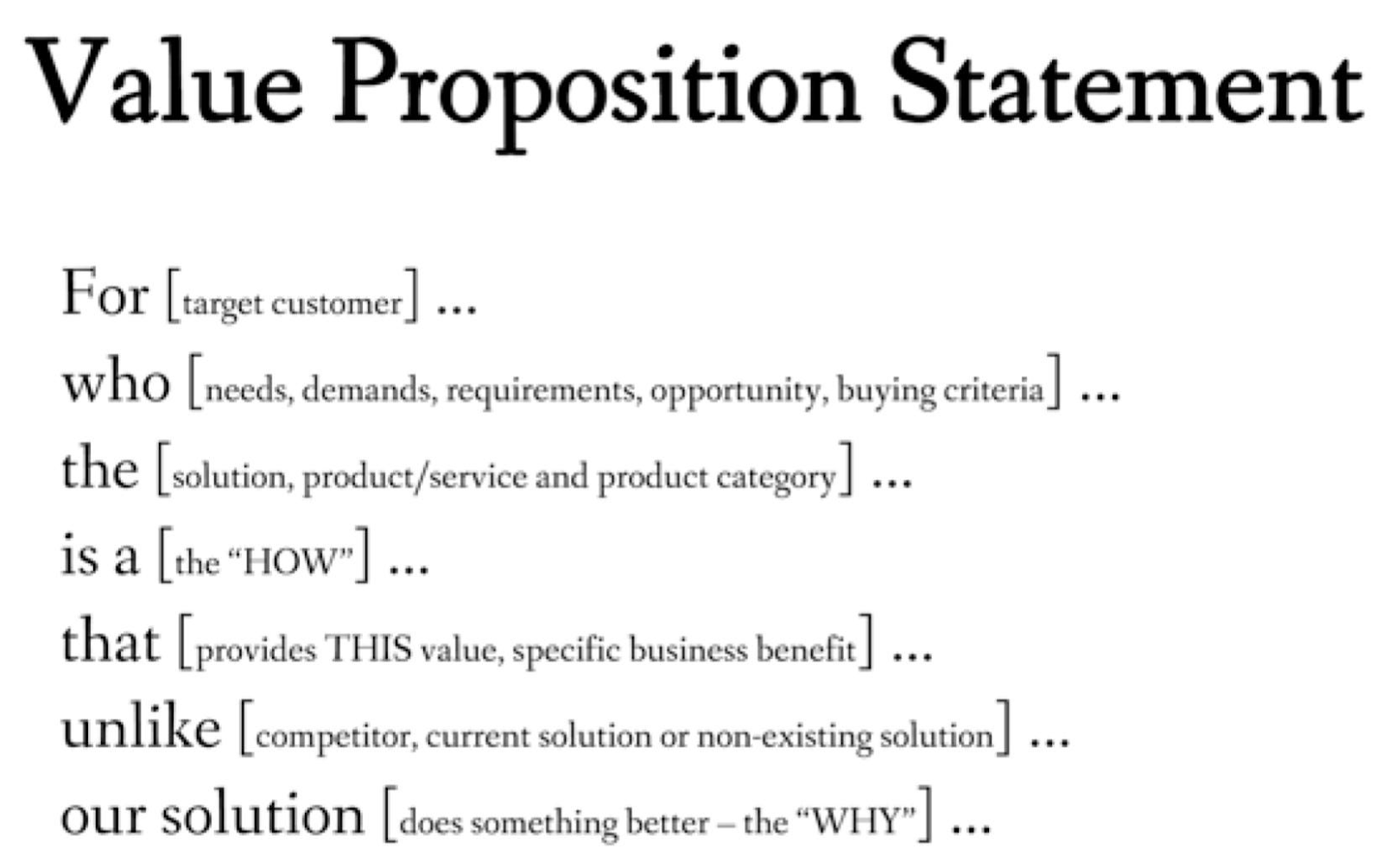 - A B2B value proposition is not a tagline or mission statement — it's a precise statement of who you help, what problem you solve, and what measurable outcome you deliver.