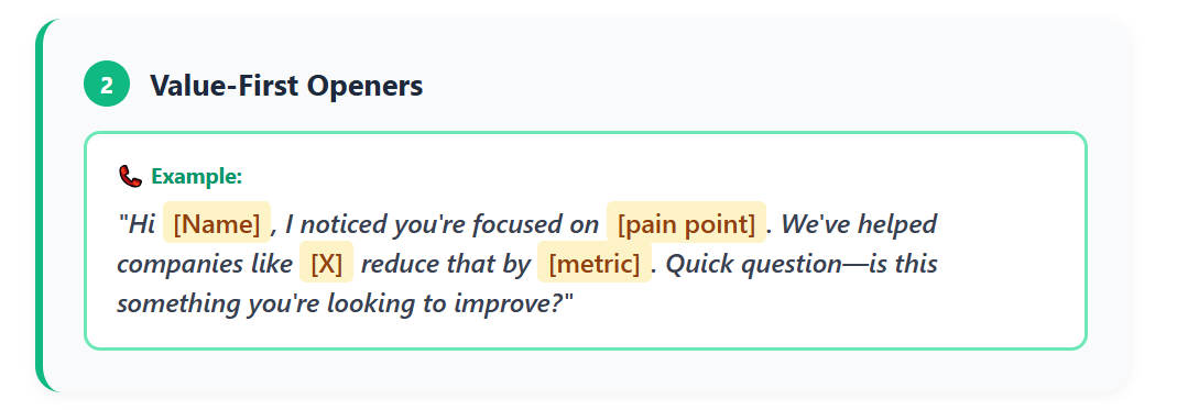 - Why it works: It signals you’re not just calling off a random list—you’ve prepared for this call.