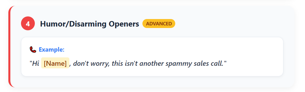 Humor is risky, but when used right, it’s incredibly effective. A light, self-aware opener can disarm prospects and make them more willing to engage.