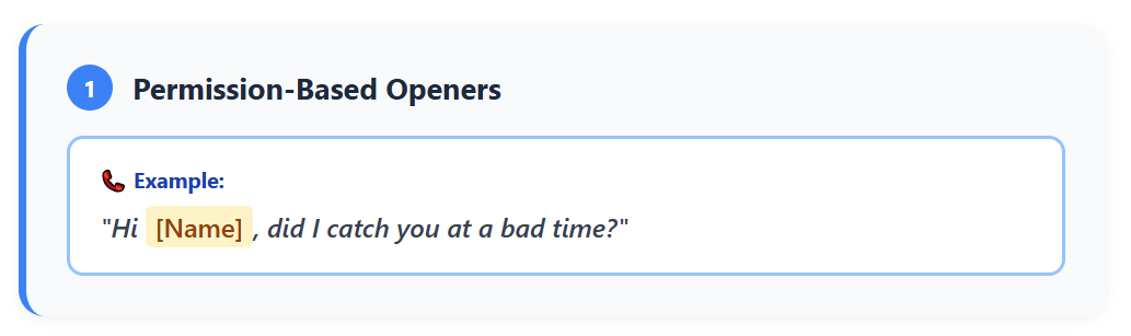 - Good opener example: “Hi Sarah, this is John—did I catch you at a bad time?” 👍