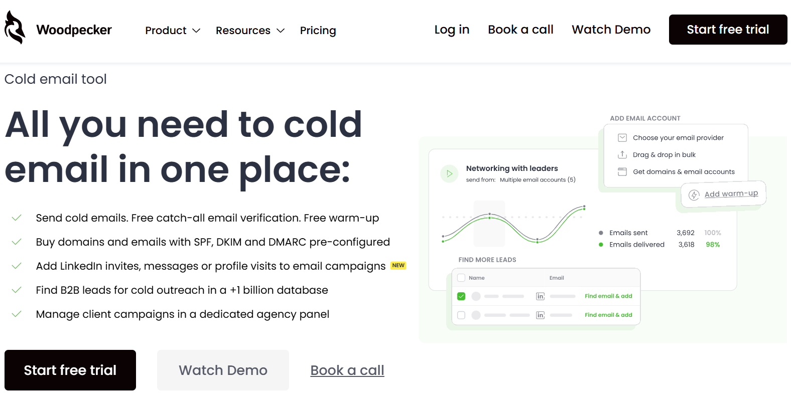 - Cold email sequences: Build automated, trigger-based campaigns with automated follow-ups.