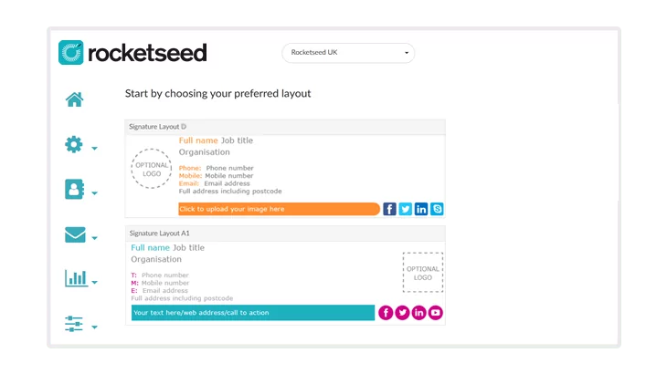 Rocketseed sits at the intersection of signature management and email marketing. You can run multiple live banner campaigns in rotation directly within employee email signatures — so a product launch and a webinar can run simultaneously — with advanced segmentation allowing different banners based on sender role or recipient domain.