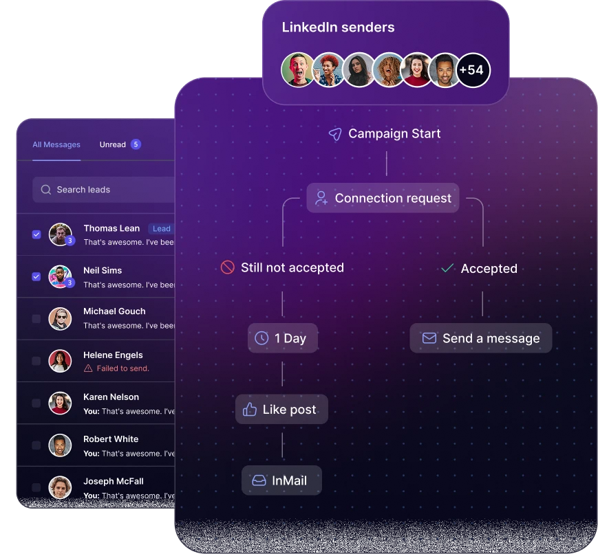 Manually managing outreach is exhausting and hard to scale. The best tools for LinkedIn outreach automation help you handle hundreds of prospects simultaneously, organize campaigns, and schedule follow-ups automatically.