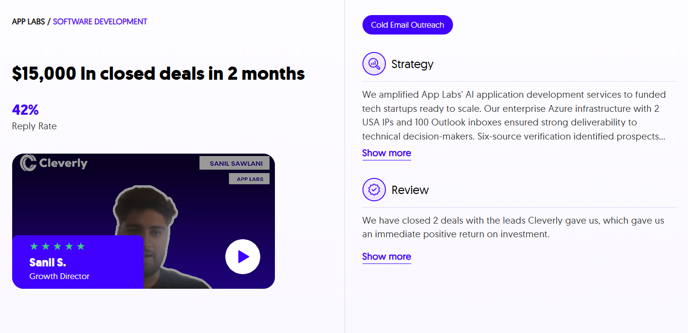 The combination of human execution, multi-touch personalization, and enterprise-level deliverability makes it one of the top companies for personalized email campaigns in 2026. If you want qualified meetings, not just email blasts, Cleverly delivers.