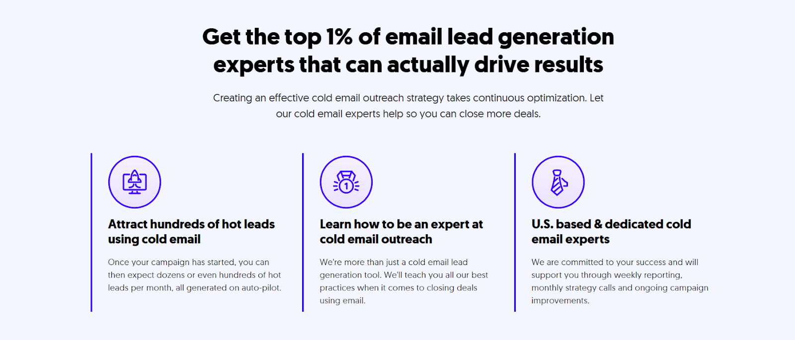 - Performance-based pricing – You only pay for meeting-ready leads, not email volume or monthly retainers.
