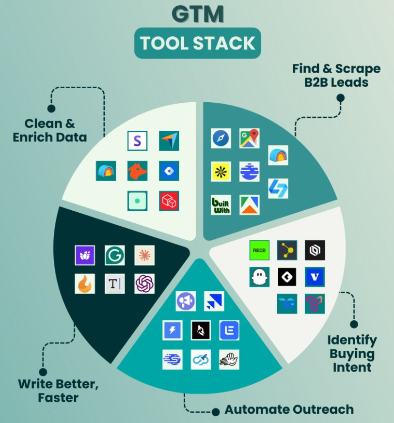 Each tool is mapped to specific GTM stages so you can see where it fits in your growth plan.