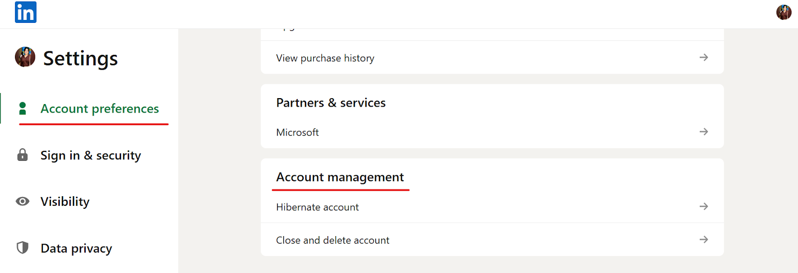 - Hibernate your account — this temporarily hides your profile, pauses all notifications, and keeps your data intact. It's the best option if you just need a break. Find it under Settings & Privacy → Account Preferences → Account Management → Hibernate Account.
