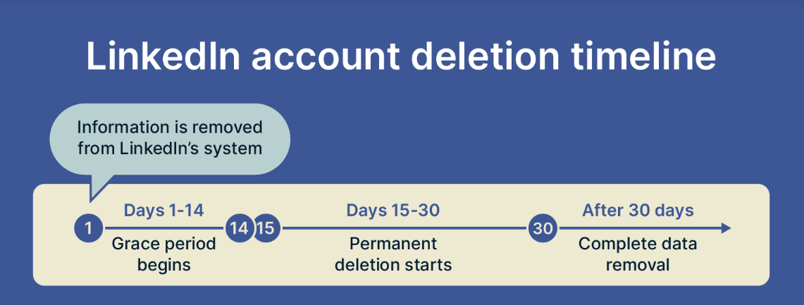 - After 14 days: LinkedIn permanently deletes your account and all associated data from their servers. This cannot be undone.