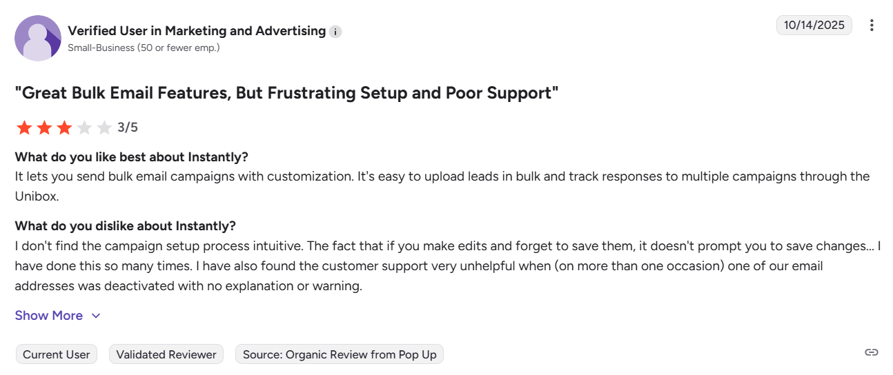 It is not flawless. Some users mention the mobile experience is clunky and that heavy reply volumes still need discipline to manage. But as a core feature, Unibox is one of the more practical things Instantly has built.