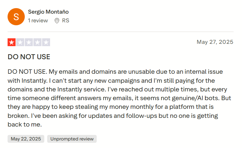The downside is real though. Instantly does not offer real-time alerts or deep diagnostics, so if something goes wrong with deliverability, you are mostly left guessing why.