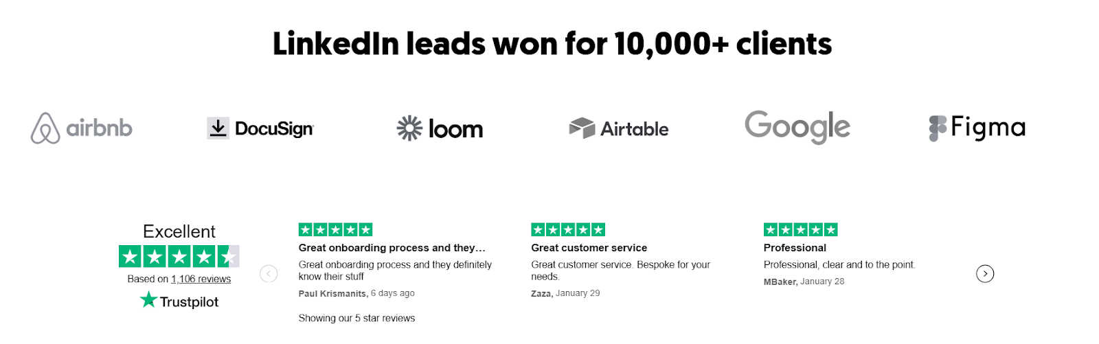 - Proven results: We've generated $312M in pipeline revenue for 10,000+ clients, including Amazon, Google, Uber, PayPal, and Slack.