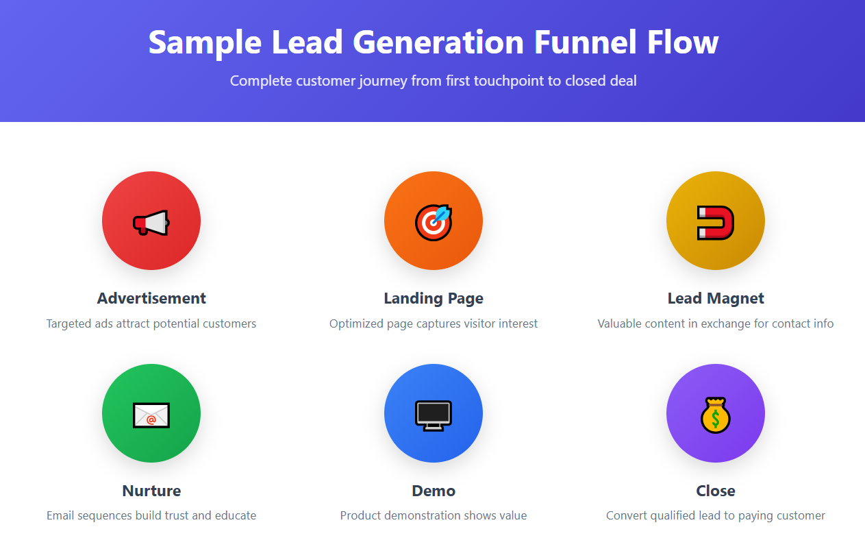 - A lead generation funnel guides prospects from awareness to conversion with clear, intentional steps.