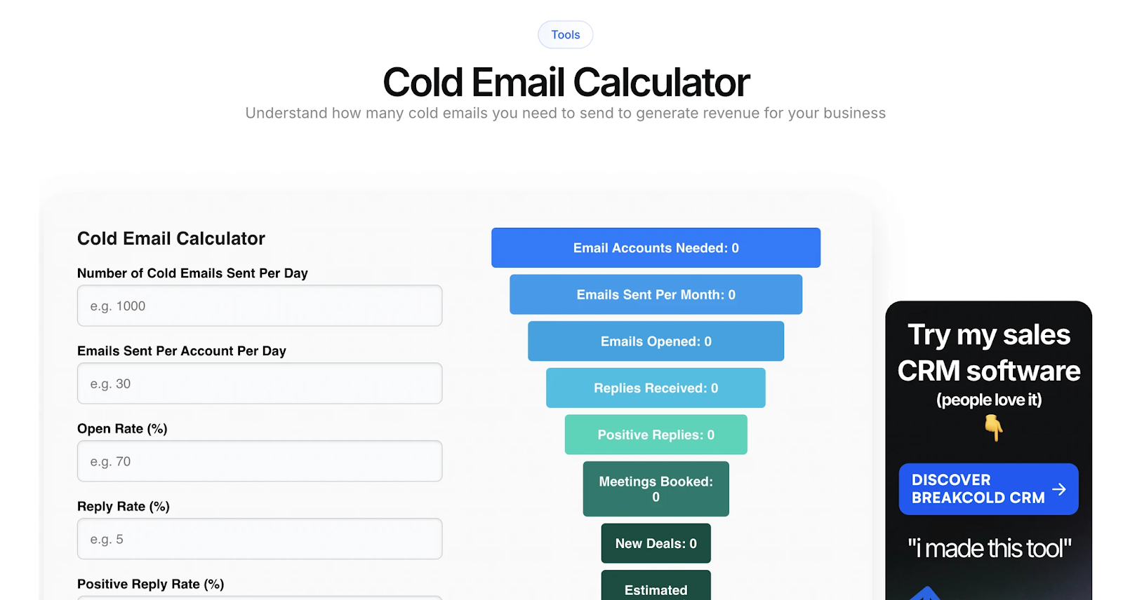 B2B example: "Cold Email Campaign ROI Calculator" or "Sales Headcount Planning Tool"