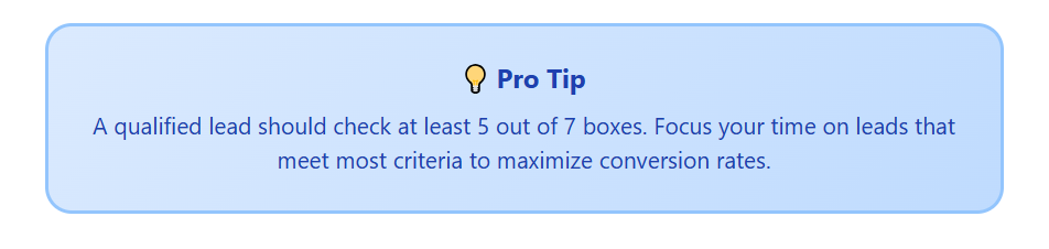 Here’s a practical 7-point lead qualification checklist you can implement immediately: