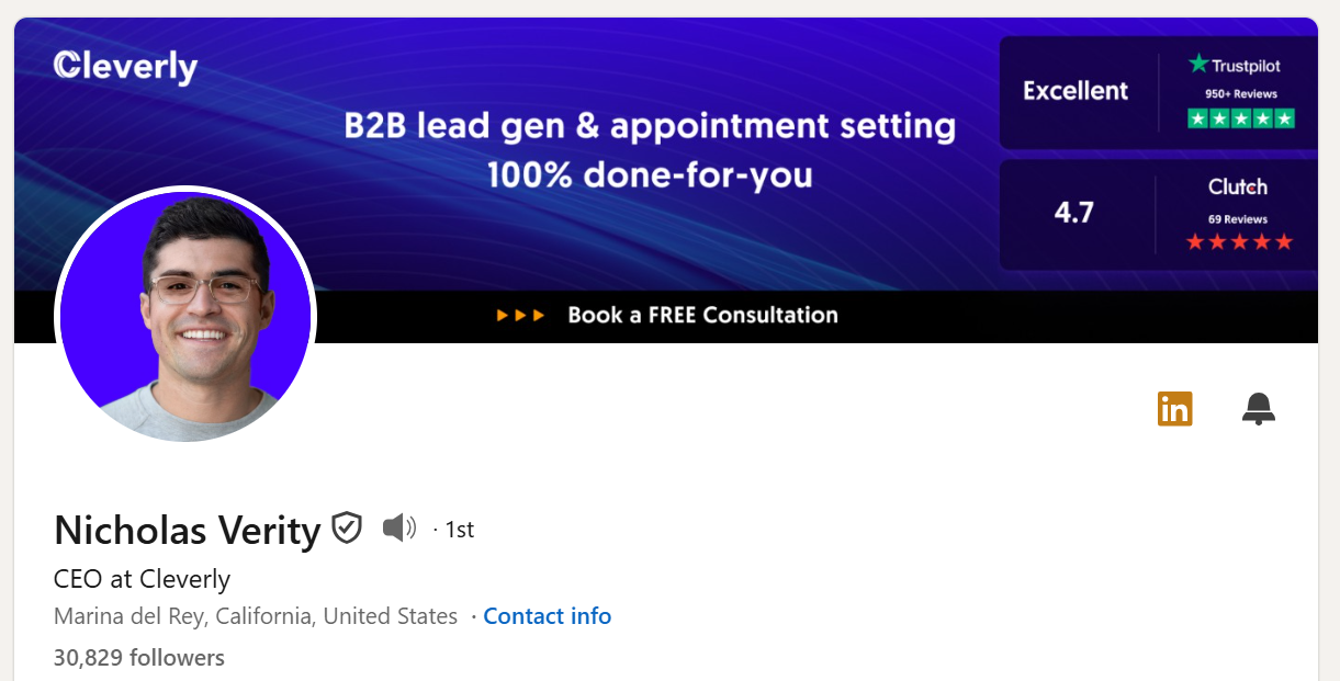 - Banner image: Often ignored, but it's visible every time someone views your profile. A clear, professional banner that reinforces your value proposition adds credibility.