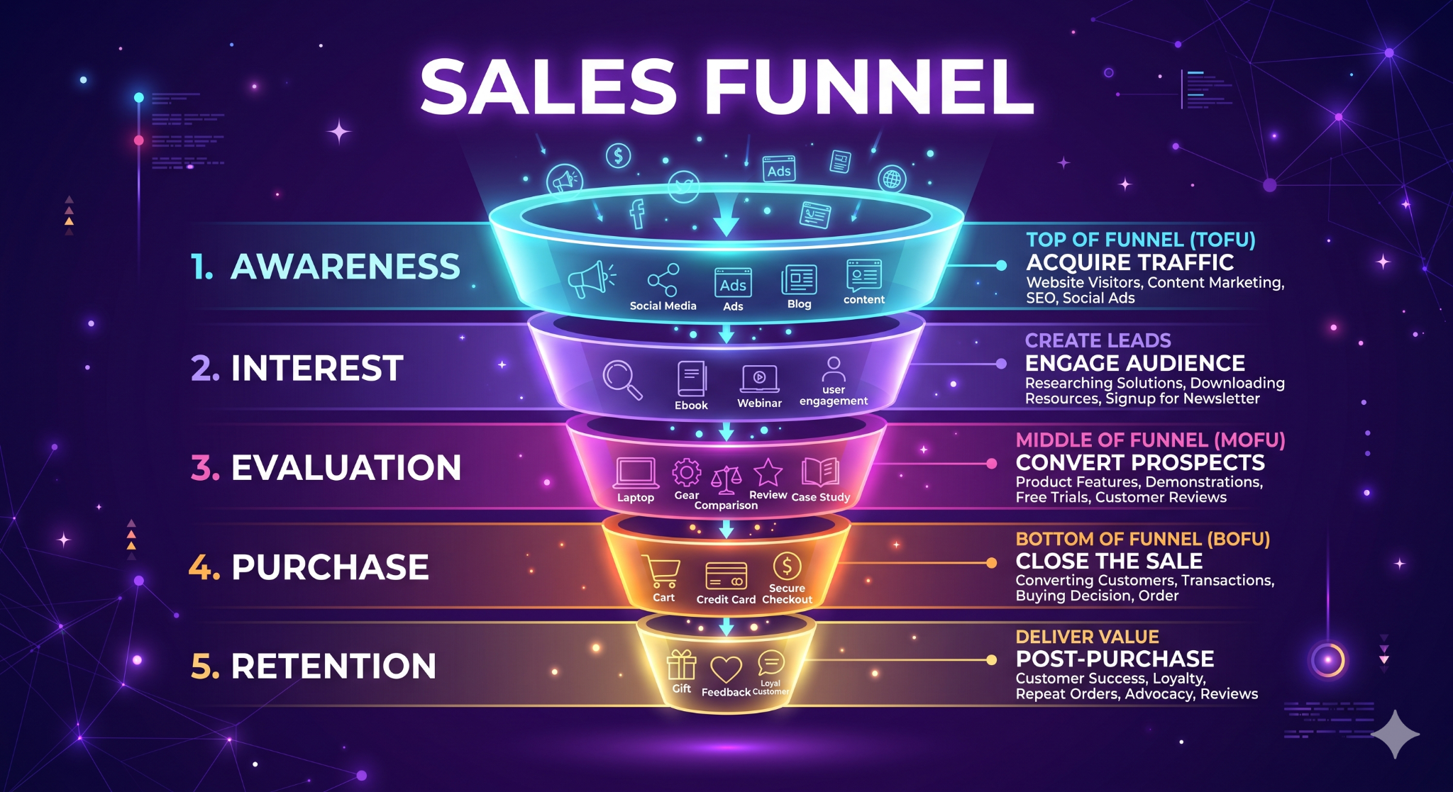 - Leads enter but never convert because there's no structured system guiding them from awareness to purchase.