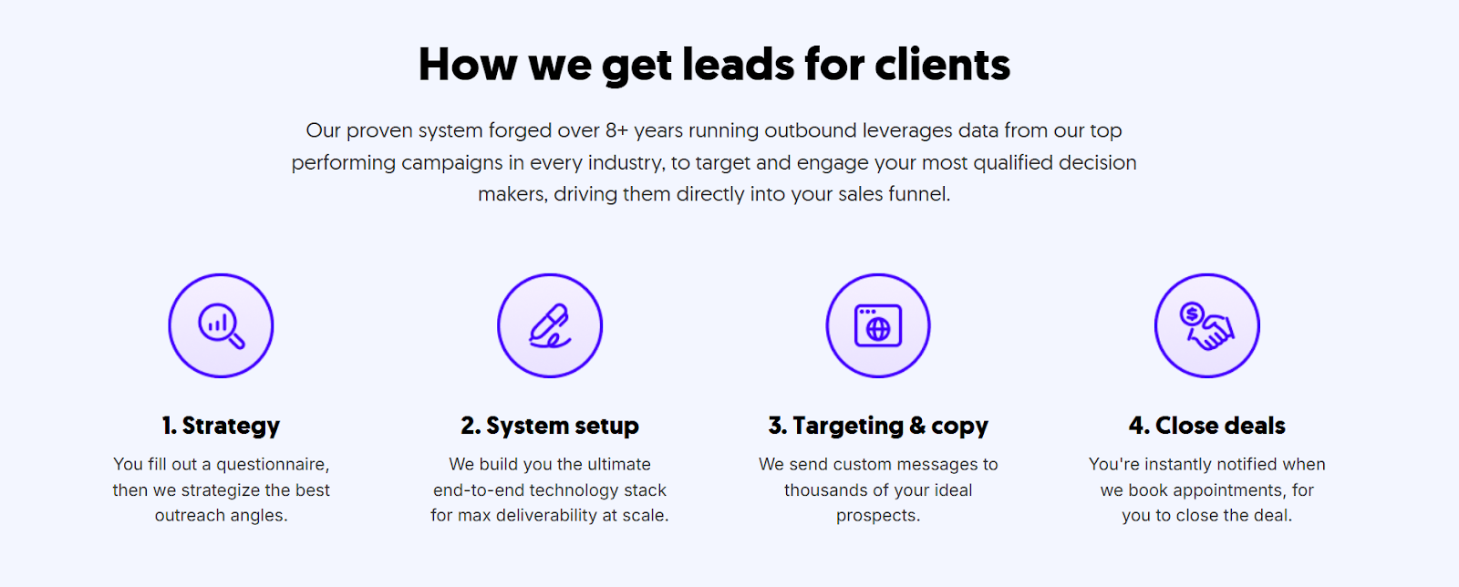 - ICP-first targeting — We build prospect lists based on your exact ideal customer profile, not generic filters.