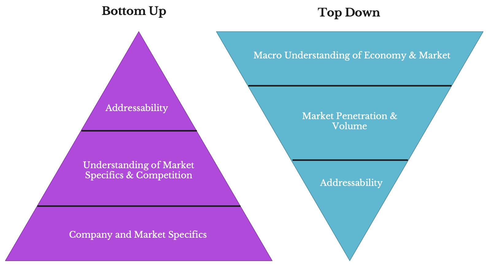 There are three main approaches companies use when thinking about how to calculate total addressable market. Each has its place depending on the data you have available.