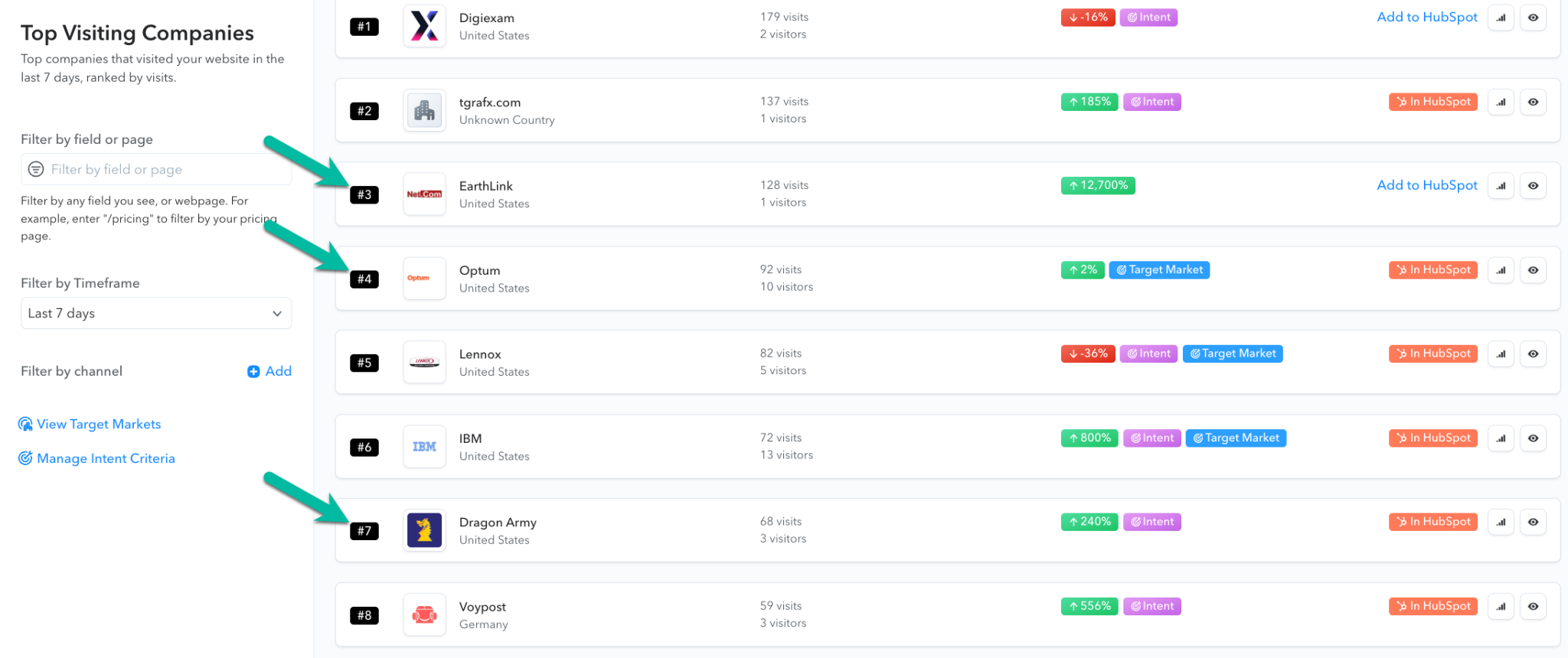 - Identified visiting companies are immediately enriched from ZoomInfo's database of 500M+ contacts and 100M+ companies.