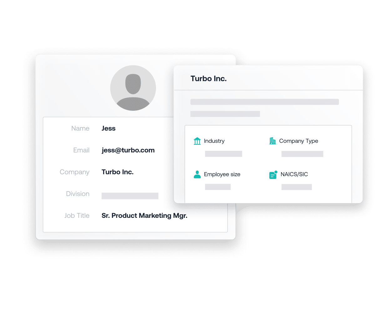- CRM enrichment — Automatically populate company firmographics, technographics, and behavioral history into your existing records.